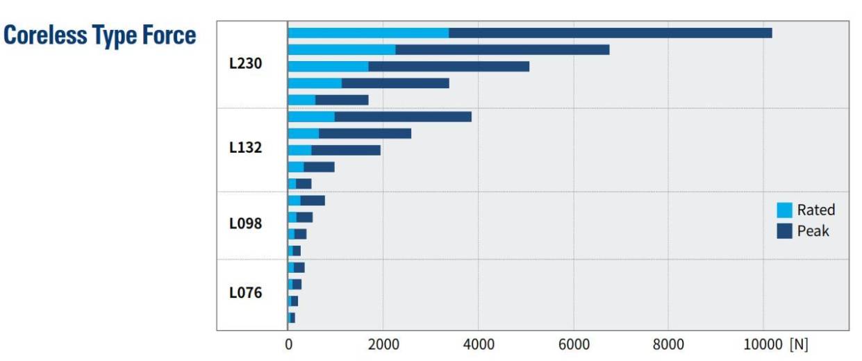 Liste des modèles de moteurs linéaires type coreless (sans noyau) :